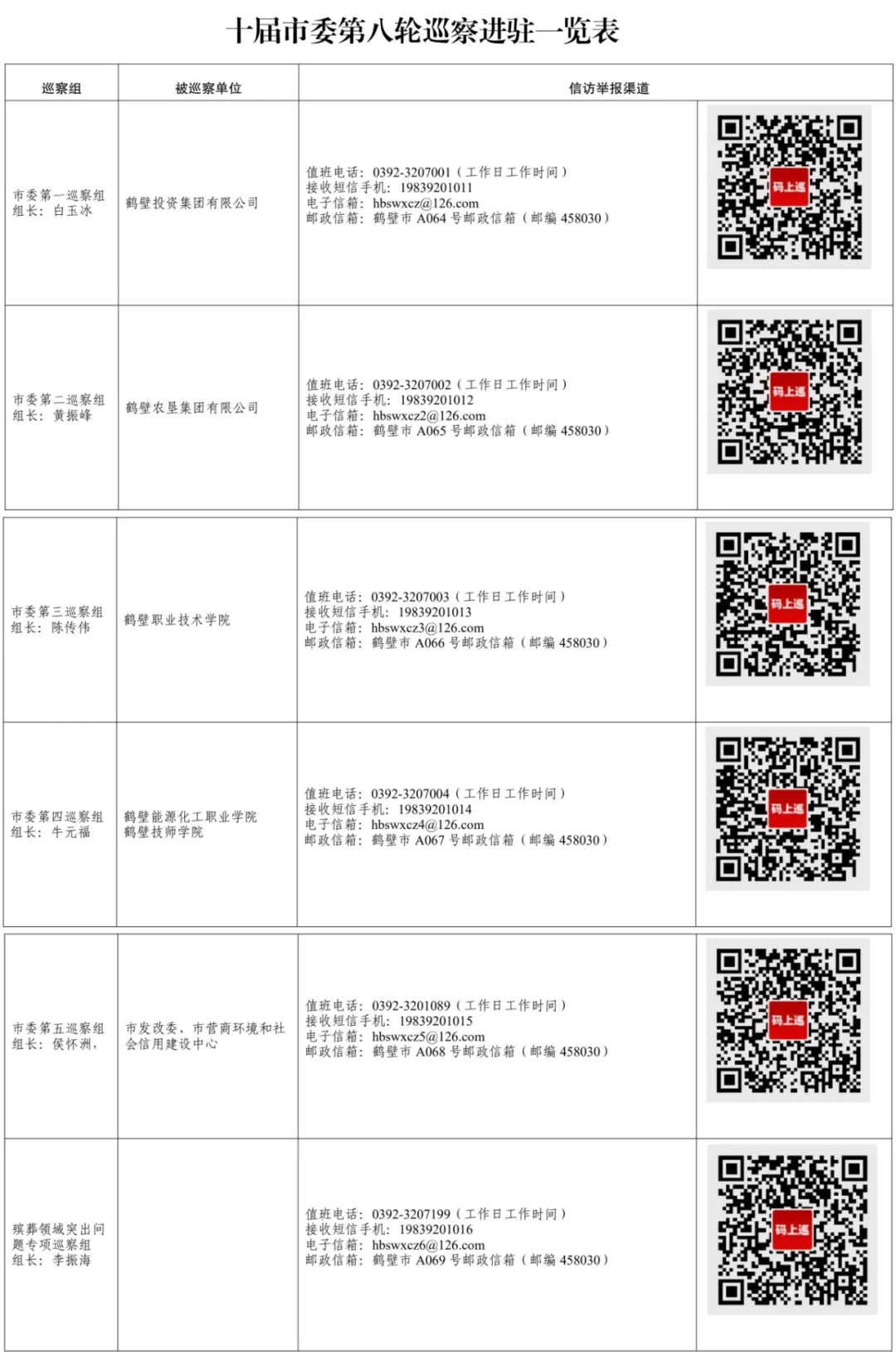 本轮巡察时间为50天左右,巡察期间,各市委巡察组设立专门值班电话、接收短信手机、邮政信箱、“码上巡”等信访举报方式,主要受理反映被巡察党组织领导班子及其成员、下一级党组织主要负责人和重点岗位人员问题的来信来电来访,重点是关于违反政治纪律、组织纪律、廉洁纪律、群众纪律、工作纪律、生活纪律以及殡葬领域突出问题和不正之风等方面的举报和反映。其他不属于巡察受理范围的信访问题,将按规定转有关部门处理。市委巡察组受理信访时间截止到2025年4月28日。(魏魏 王新媛)