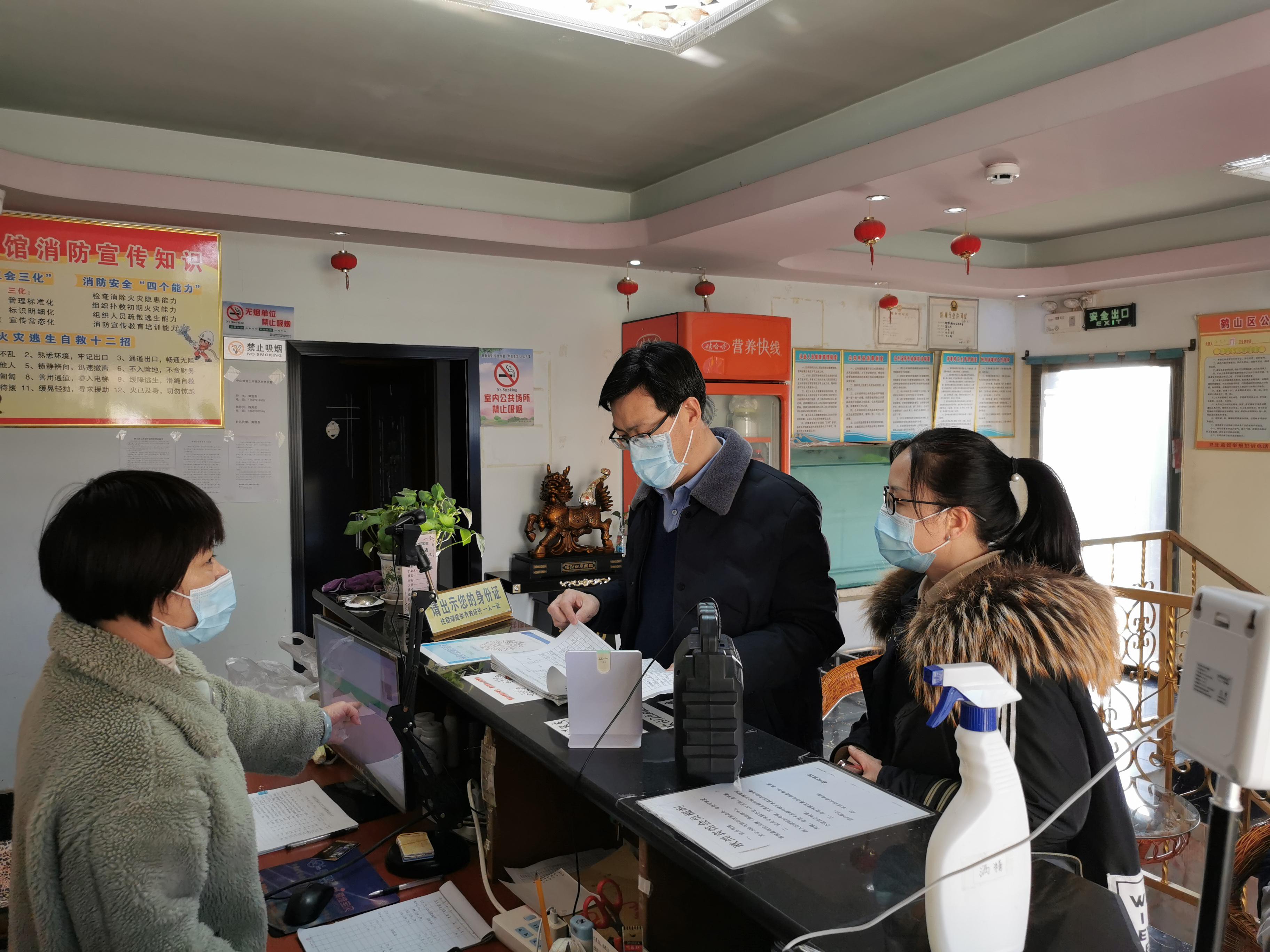 鹤山区纪委监委到宾馆酒店检查疫情防控措施落实情况。