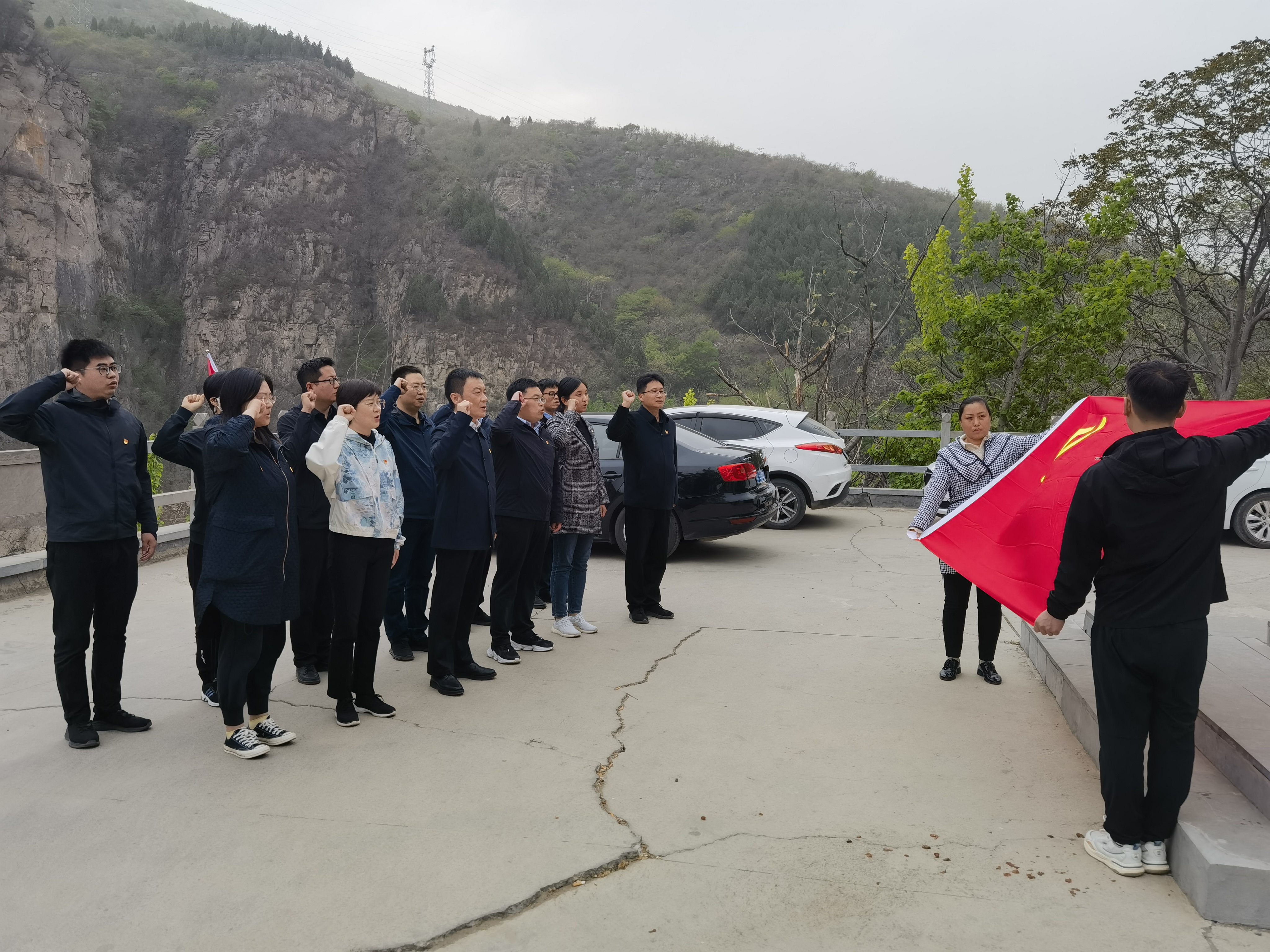 在“八一拥军纪念林”陡直如削的峭壁侧面,斜生着一棵棵侧柏,一簇簇翠绿流入云际。这是靳月英老人祖孙四代和村民们连年苦战、植树育林的不凡业绩,更是一个时代奋斗的缩影、精神的丰碑。全体党员满怀敬意,认真聆听着靳月英老人几十年来绿化荒山、拥军爱民、帮贫济困、捐资助教的感人故事,深深震撼着每个人的心灵。在纪念碑前,全体党员面向党旗重温入党誓词,坚定信仰初心,汲取奋进力量。