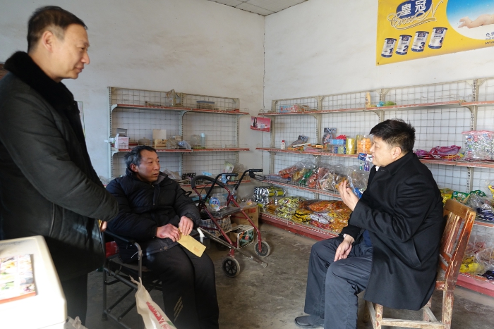 马锁文走进朱长飞家中,关切的询问了一年以来的收入、政府扶贫政策落实情况,以及他的生活状况、年货准备情况,并嘱咐随行有关干部一定要解决好朱长飞的医疗费用问题。