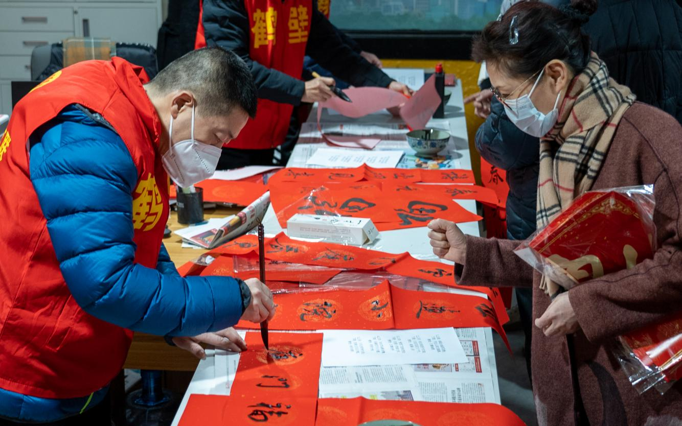 无联不成春,有联春更浓。书法家们挥笔洒墨,各种字体的“福”“廉”主题春联活脱而出,赢得围观群众的一片称赞。“喜居宝地千年旺,福照家门万事兴”“节俭且从春节俭,廉洁应似雪莲洁”……一幅幅现场书写的春联中,既有喜迎新春的美好祝福,又有蕴含清廉寓意的新春寄语。在志愿者们的协助下,居民在欢声笑语中挑选喜欢的春联和门福,营造了清廉过节的浓厚氛围。