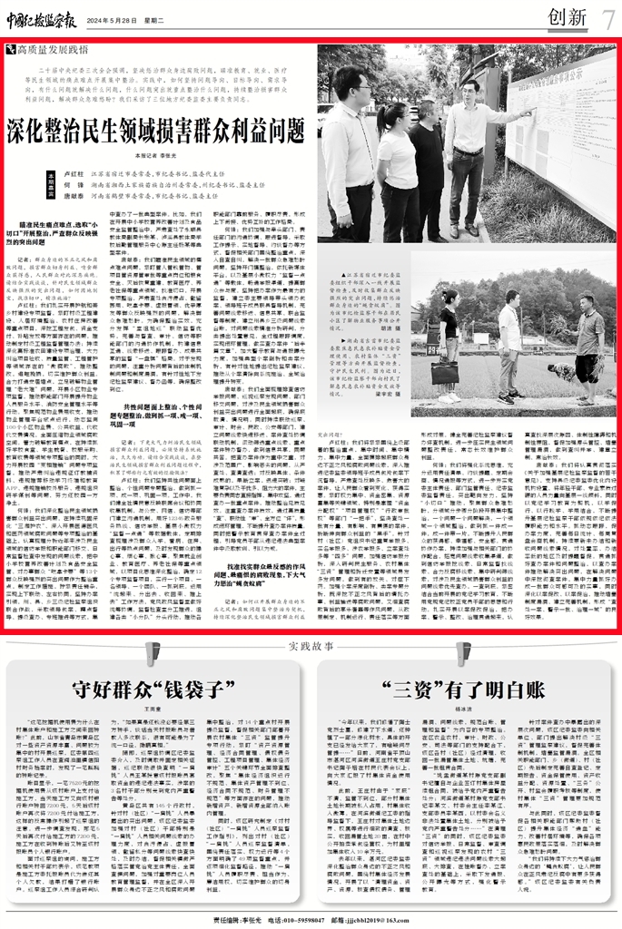 卢红柱:我们将紧紧围绕上级部署的整治重点,集中时间、集中精力、集中力量,全面摸排起底群众身边不正之风和腐败问题线索,深入推进纪委监委领导班子成员包片包案下沉督导,严肃查处反映多、危害大的案件,让人民群众看到变化、获得实惠。紧盯权力集中、资金密集、资源富集等关键领域,特别是掌握“资金分配权”“项目管理权”“行政审批权”等部门“一把手”,坚决查处一批有分量、有影响、有震慑的案件,斩断伸向群众利益的“黑手”。针对村(社区)党组织书记重复举报多、实名举报多、涉农举报多、立案查处多等“四多”问题,加强信访举报分析,深入研判民生服务、农村集体“三资”管理和拆迁安置等领域易发多发问题,做到有的放矢、对症下药。加强个案深度剖析、类案专题分析,既深挖不正之风背后的请托办事、利益输送等腐败问题,又细查腐败背后的享乐奢靡等作风问题,从政策制定、机制运行、责任落实等方面形成对策。健全完善纪检监察建议督办评查机制,进一步压实民生领域问题整改责任,常态长效维护群众利益。