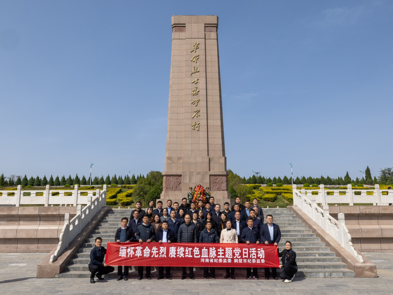 为深入开展学习贯彻习近平新时代中国特色社会主义思想主题教育,教育引导党员干部传承红色基因,赓续红色血脉,根据省直文明办关于深化开展传统节日文化活动的通知精神,持续深化“我们的节日”主题活动,4月6日,省纪委监委、鹤壁市纪委监委联合开展“缅怀革命先烈 赓续红色血脉” 清明节主题党日活动,60余名党员代表参加此次活动。