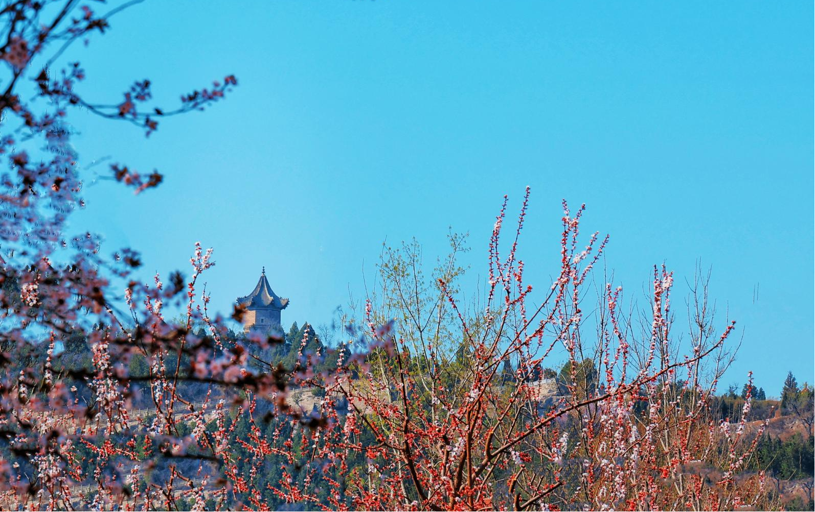 东风送暖,春回大地,新绿的枝条和粉红的花朵相映成趣,与远处的大伾山遥相呼应,在蓝天暖阳下共舞一曲春天的芭蕾。(浚县纪委监委 雷风民 摄)