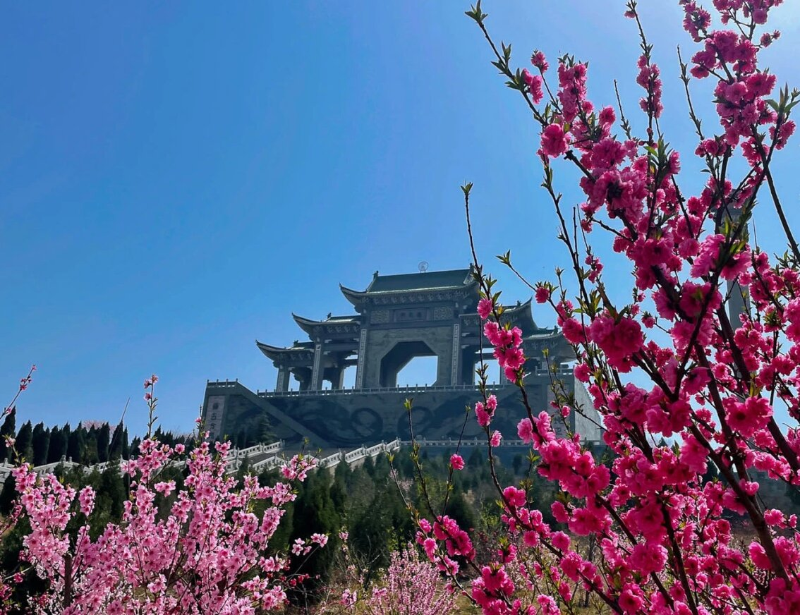 淇县云梦山桃花和樱花竞相开放,此起彼伏,似散开锦缎,丛丛簇簇,与蓝天白云共同绘就了暗香涌动的春日美景。(淇县纪委监委 孟庆德 摄)