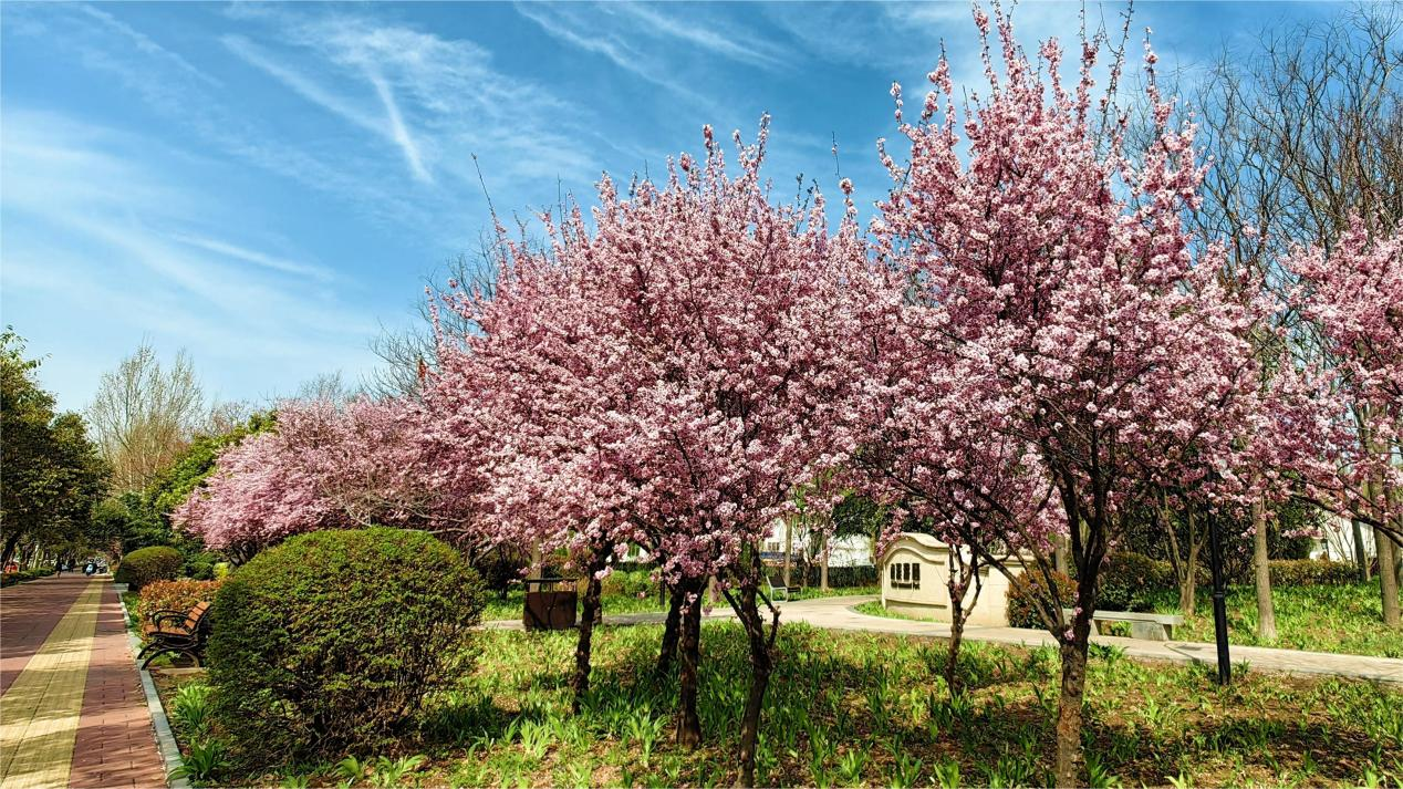 淇滨区华夏南路的樱花竞相绽放,亭亭如盖,如云似霞,形成一道美丽的风景线,吸引人们纷纷驻足欣赏,感受淇滨的自然环境和人文精神的和谐之美。(淇滨区纪委监委 王军伟 摄)