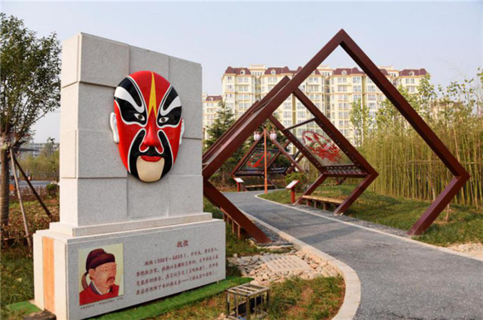 铁艺剪纸长廊:选择歌剧《江姐》中江姐唱段《红梅赞》、豫剧《七品芝麻官》、唐成唱段《怎当百姓的父母官》、豫剧《张伯行》选段中体现廉洁主题的场景进行艺术演绎。让游客见场景知情节,观纸艺赏剧目,接受廉洁教育。