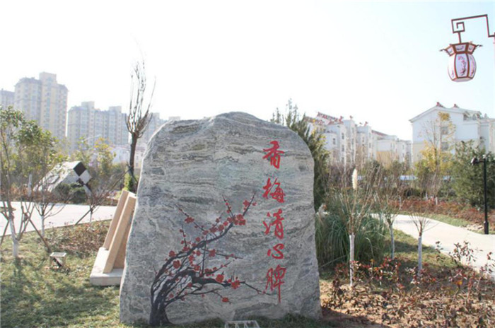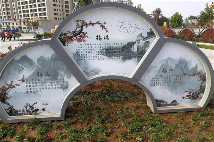 香梅园——香梅清心脾:游园中设置梅花造型艺术橱窗,展示有关梅花的起源、典故、家风家训等内容和古典风格的橱窗报栏、LED大屏幕。