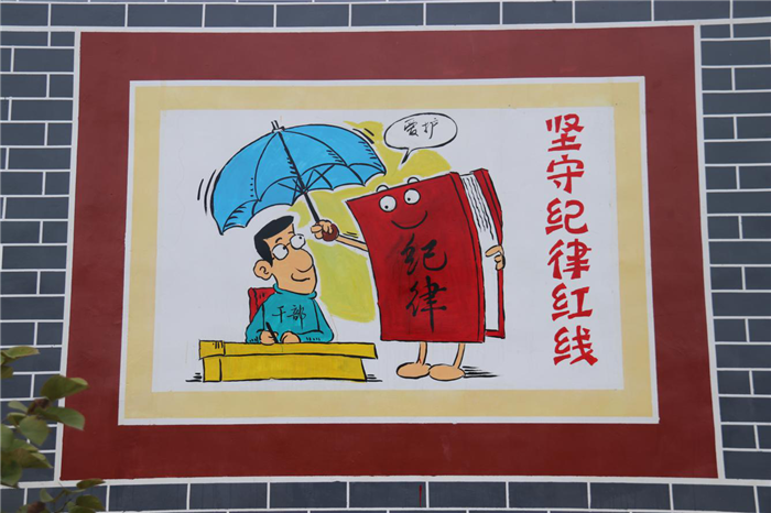 这面传递着“廉洁”正能量的围墙以“清正廉洁”为主题,有诗歌、有漫画,生动形象、立意高远。