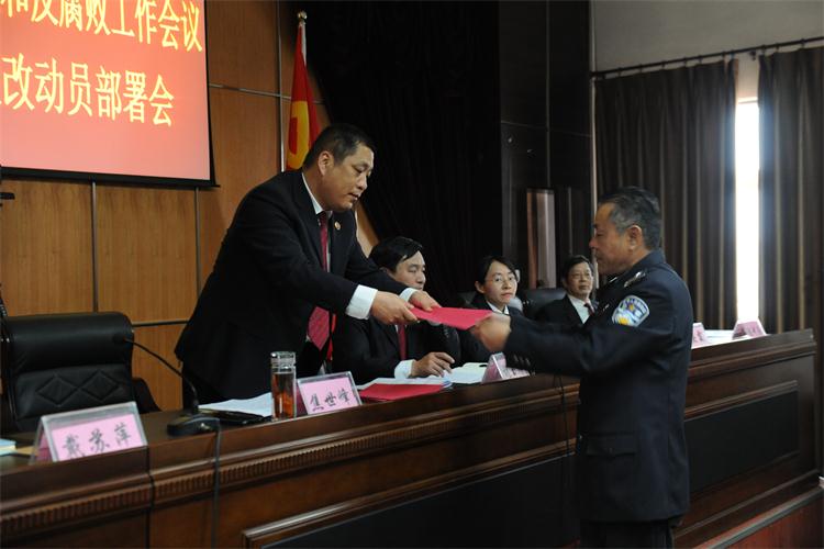 会上,21名领导干部依次向党组书记、检察长焦世峰递交了党风廉政建设责任书,进一步明确全面从严治党和全面从严治检主体责任。
