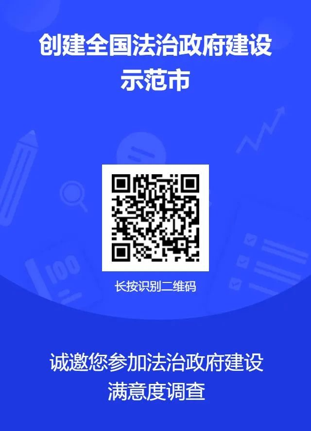 当前,我市正在积极争创“全国法治政府建设示范市”。为深入推进依法行政,大力提升执法质效,持续优化营商环境,为广大群众提供更加优质高效的服务,市创建全国法治政府建设示范市工作领导小组办公室决定于即日起至4月15日,在全市范围开展法治政府建设满意度调查,真诚欢迎社会各界人士客观、全面评价我市法治政府建设情况。您的每一个评价和需求,将进一步推动完善我市法治政府建设工作,让我们携手共建法治政府,共享美好生活!