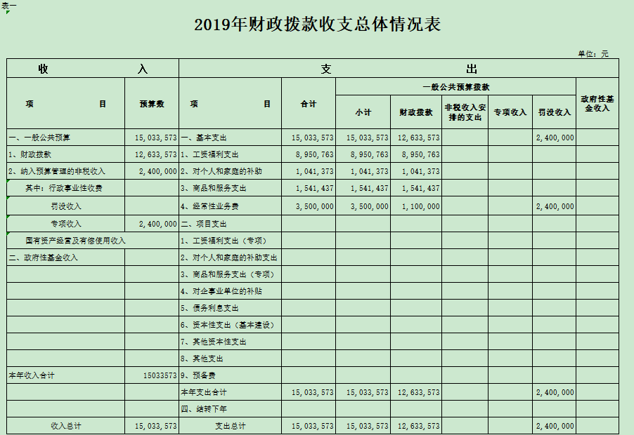 一、部门收支总体情况表