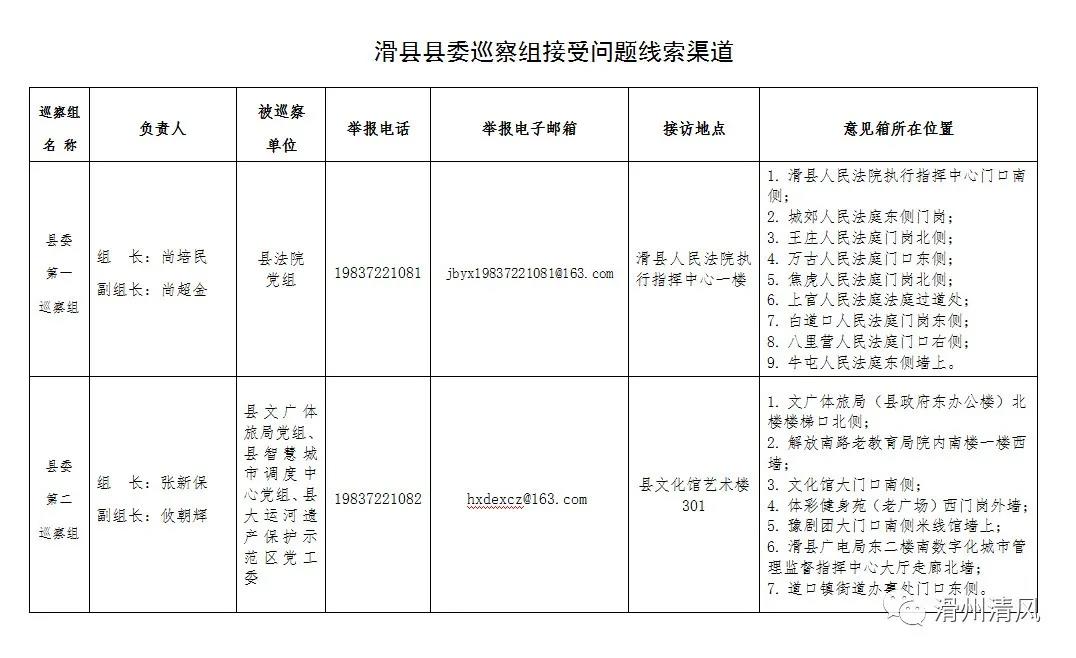 (六)对县委、县政府的重大决策部署贯彻执行不力,以及在日常工作中不作为、慢作为、乱作为、不担当等问题。巡察期间,各巡察组均开设举报电话、电子邮箱,并在被巡察单位设立举报信箱。巡察结束后上述举报反映方式将自行关闭。对不属于巡察组受理范围的问题,巡察组只负责向被巡察单位转办,具体办理情况可向被巡察单位咨询了解。巡察期间,请广大干部群众对巡察组遵守巡察工作纪律和廉洁自律的情况进行监督,发现有违纪违法行为的,向县委巡察办反映(监督电话:0372-8663388),也可以依照有关规定直接向有关部门、组织反映。