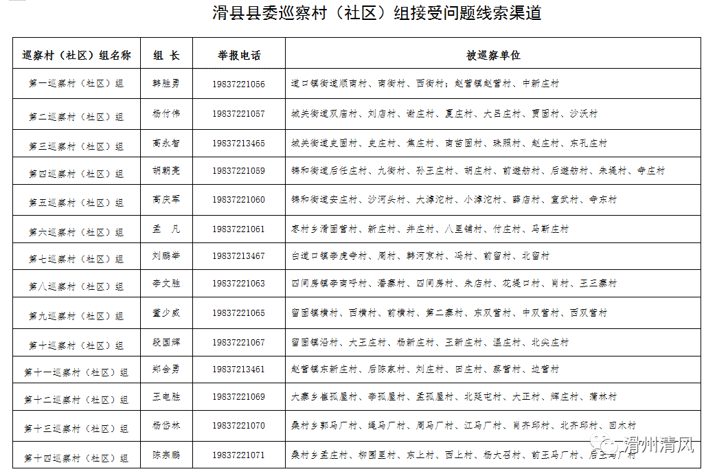 按照县委统一安排,现将中共滑县十一届县委第十一轮巡察工作和第六轮巡察村(社区)工作相关事项公告如下: