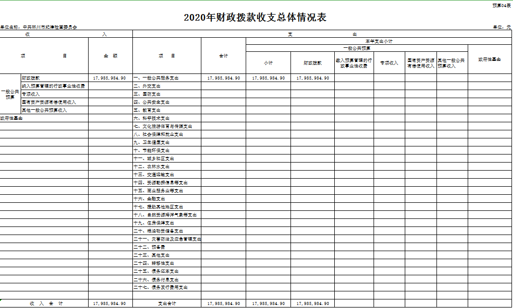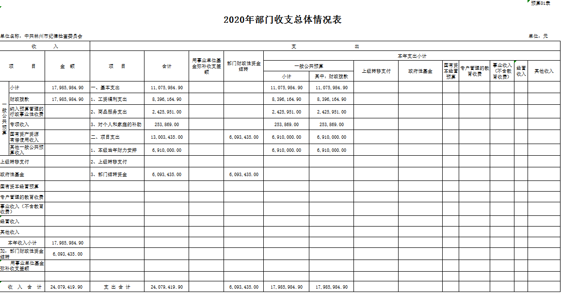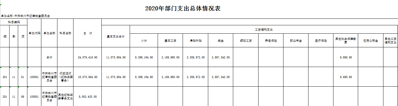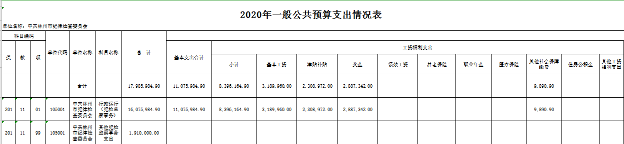 附件: 中共林州市纪律检查委员会2020年度部门预算表