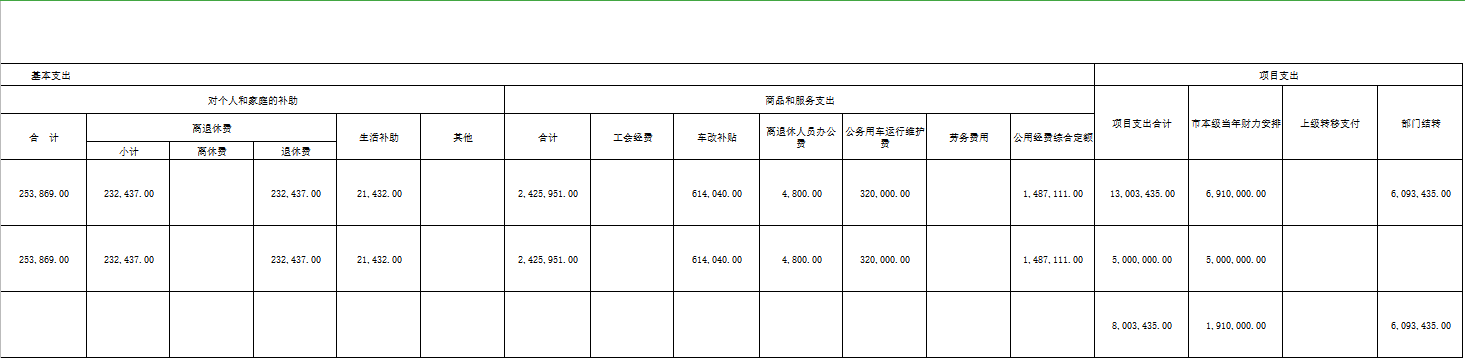 对个人和家庭补助25.39万元,包括离退休费23.25万元、生活补助2.14万元;