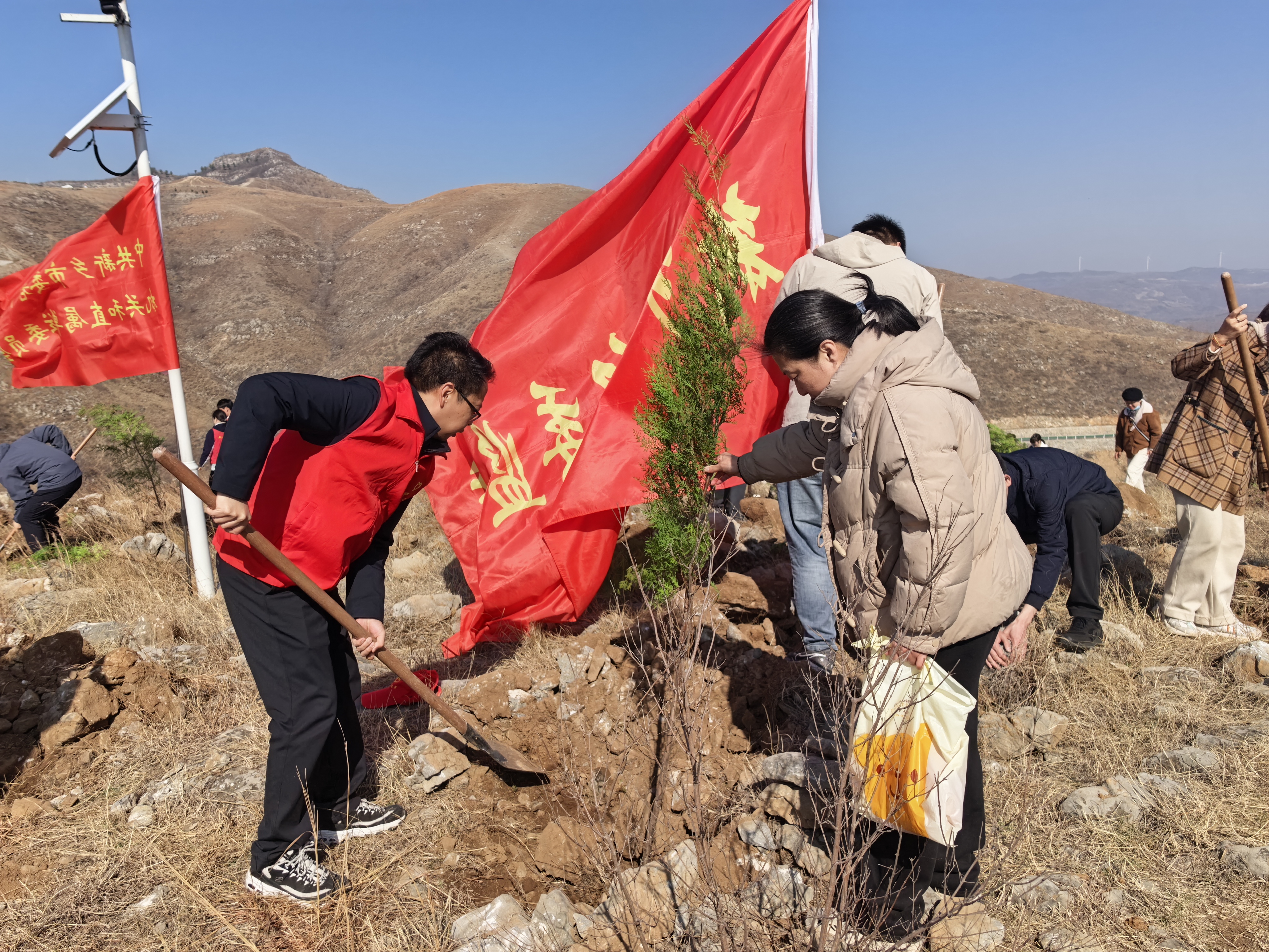 活动现场,党员干部热情高涨、分工明确、配合默契,有的挥锹铲土,有的扶苗填坑、有的浇水灌溉,现场一派热火朝天的劳动景象。一锹一铲间,一株株新苗昂然挺立,为春日增添勃勃生机,也让绿色发展理念根植于心、见之于行。