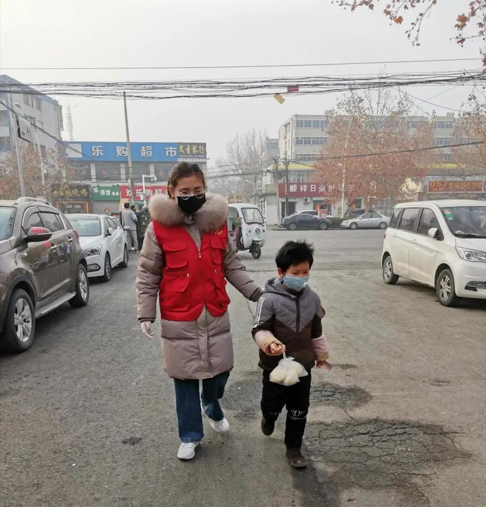 牧野区纪委监委“90“后纪检新兵温笑语在卡点值班时,主动帮助过往的老人和小朋友过马路,简单的举动,温暖无数人。(牧野区纪委监委供稿 摄影:王玲芳)