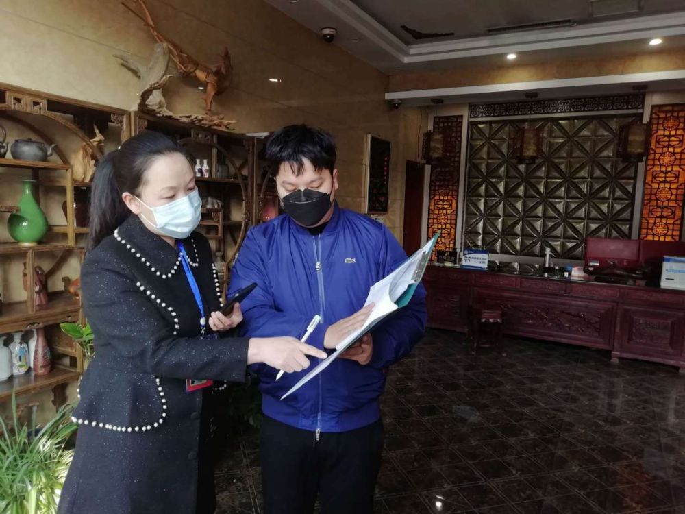 疫情发生以来,获嘉县纪委监委第二专项督导组组长李洋带队到商务酒店督导服务行业防控措施落实情况,在做好疫情防控监督的同时,积极推动复工复产,确保疫情防控和经济社会发展两不误。(获嘉县纪委监委供稿 摄影:赵福涛)